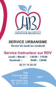 > Par courrier : CCPHB – Service Urbanisme – 33 cours des fossés 14 600 – HONFLEUR
