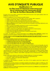 Une enquête publique sera organisée à l’issue de ces consultations. Le public pourra alors consulter l’intégralité du projet de PLUi, le bilan de la concertation et l’ensemble des avis émis. À l’occasion de cette enquête publique, le public pourra alors émettre ses observations avant l’approbation du PLUi.