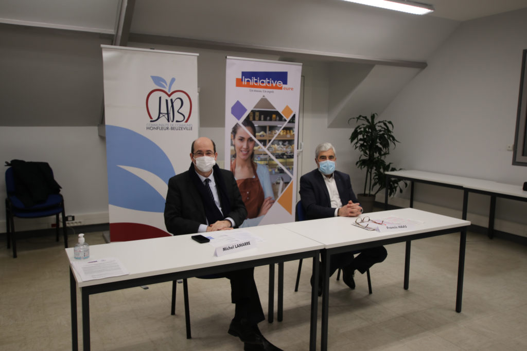 Le vendredi 14 janvier 2022, le Président de la Communauté de Communes du Pays de Honfleur-Beuzeville (CCPHB), Michel Lamarre et le Président d’Initiative Eure, Francis Haas ont présenté les 8 entrepreneurs accompagnés par Initiative Eure et ayant bénéficié d’un financement de cette dernière de 2019 à 2021.