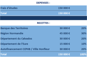 Un plan de financement a été établi pour réaliser cette étude :
