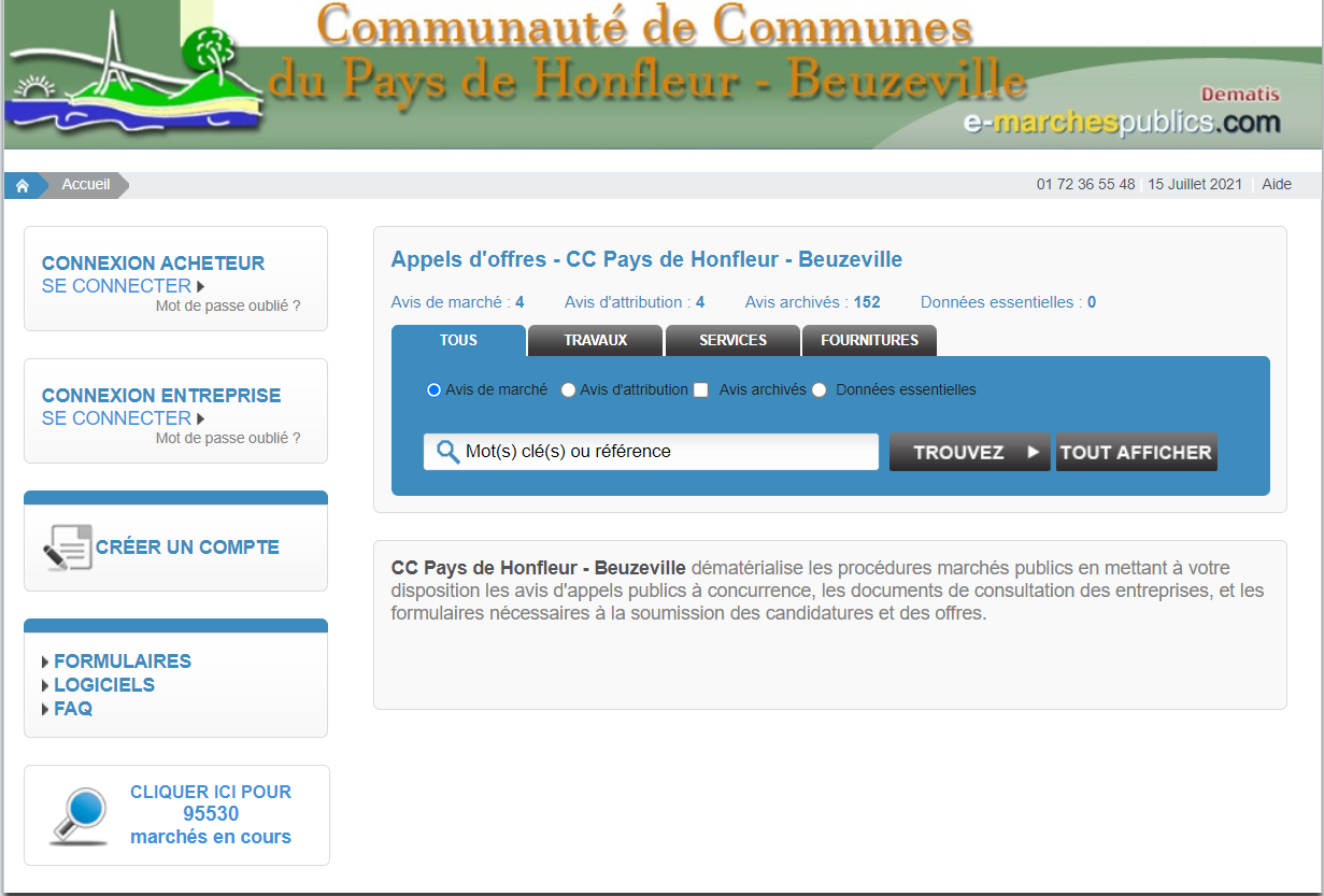 En tant que maître d’ouvrage, la Communauté de Communes du Pays de Honfleur-Beuzeville doit procéder à des consultations dans le cadre de « marchés publics », en application de la réglementation liée au code des marchés publics.