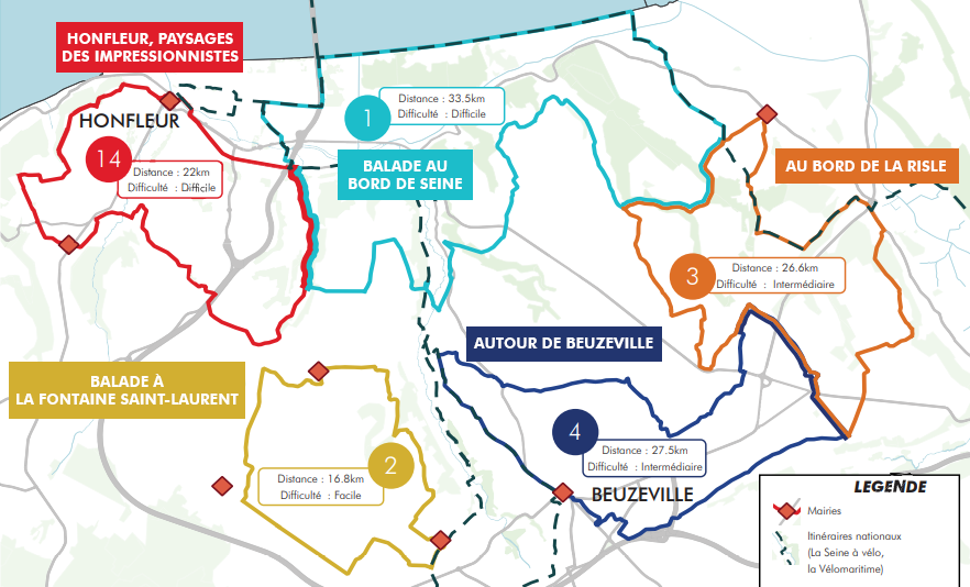 Cinq boucles cyclo-touristiques seront aménagées avant l’été pour découvrir autrement notre patrimoine. Michel Lamarre, Président de la CCPHB, a obtenu que l’une d’entre elles, « Honfleur, paysages des Impressionnistes », soit intégralement réalisée et financée par le Conseil départemental du Calvados.