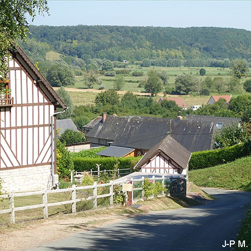 Panorama le long de la côte de la Brûlette, promenade forestière, belles chaumières proches du bourg.