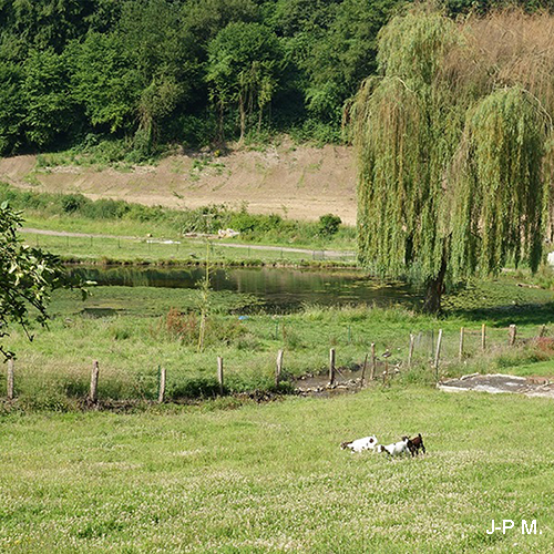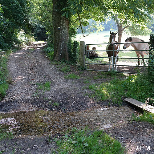 Ruisseau et village de Jobles, vues sur le Pont de Normandie et l’estuaire, bocage et forêt.