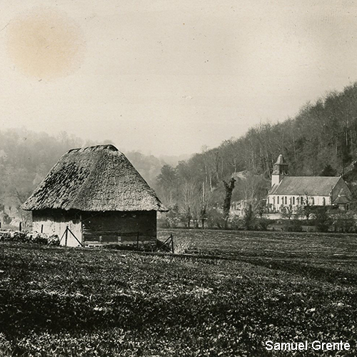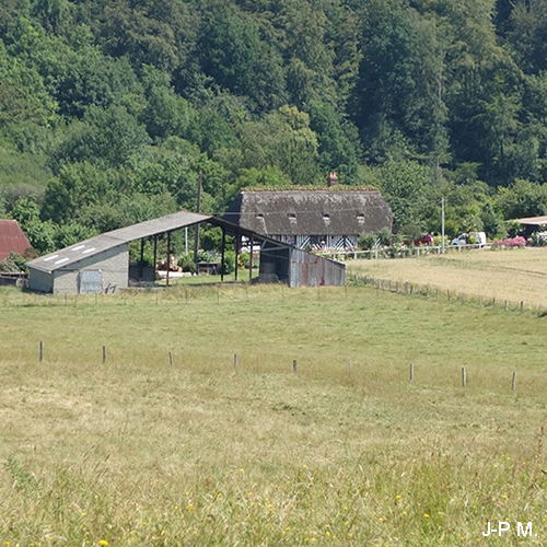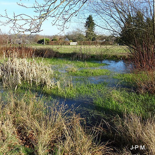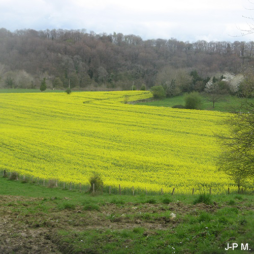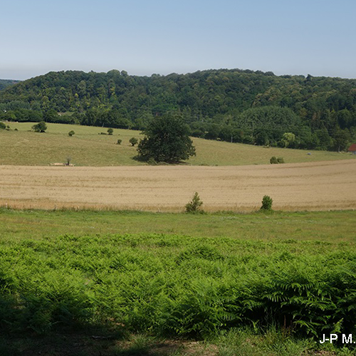 Vaste panorama sur la vallée, bocage de chemins creux, gué sur la Vilaine.