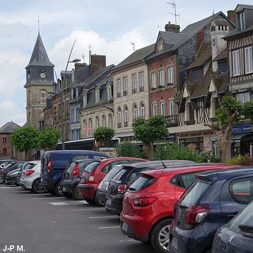 Allée forestière, grand lavoir et fontaine couverte de Saint Hélier, passage dans une court typique et maisons à colombages.