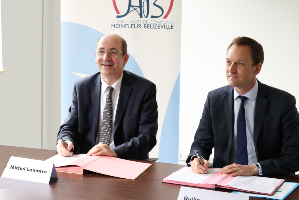 Ce lundi 5 juillet, Michel Lamarre, Président de la Communauté de communes du Pays de Honfleur-Beuzeville, et Guillaume Lericolais, Sous-Préfet de Lisieux, ont signé le Contrat de Relance et de Transition Énergétique (CRTE).