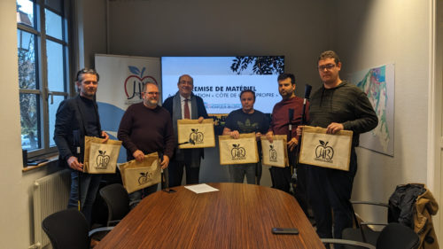 Afin de soutenir les initiatives citoyennes visant la protection de notre environnement, Michel Lamarre, Président de la CCPHB, a remis 10 pinces à déchets et 15 sacs de collecte en toile de jute au créateur du collectif « Côte de Grâce propre », Monsieur Jason Fiant.