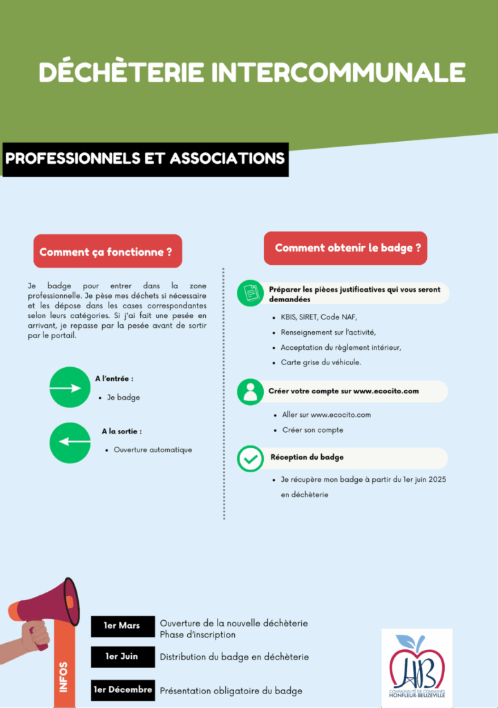 - La déchèterie de Honfleur : Un badge sera bientôt obligatoire pour accéder à la déchèterie. Inscription ici.