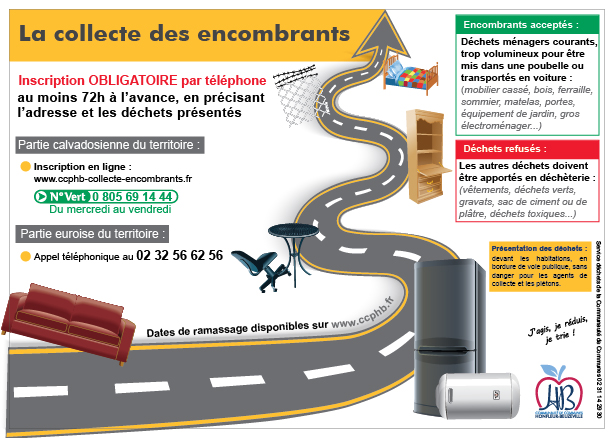 Une collecte des encombrants est organisée tous les 1 ou 2 mois selon les communes, à des dates précises.